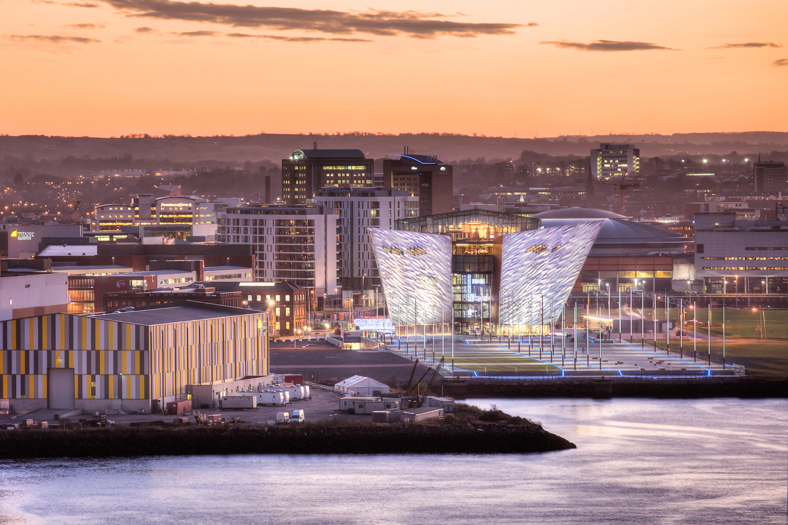 The iconic Titanic Museum is the largest man-made tourist attraction in Northern Ireland, and tells the story of the famous ship of the same name. The structure is shaped like a star to replicate the emblem of the White Star Line shipping company that built it, with each corner of the building shaped like a hull.